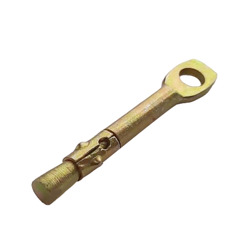 Анкер потолочный с ушком 6х60 мм позволит вам быстро и надежно прикрепить к прочным сплошным перекрытиям подвесные конструкции небольшого веса. С его помощью можно подвесить люстры, цепи, тросы, коммуникации, предметы декора и элементы подвесных потолков. Головка в форме расплющенного кольца с внутренним диаметром 6.3 мм обеспечивает удобство крепления подвешиваемых изделий. Анкер в потолок с проушиной имеет подвижную втулку, расширяющуюся под действием клина. Для его фиксации в отверстии достаточно с усилием потянуть за ушко. Чем выше вырывающая сила, тем больше распор втулки и тем надежнее фиксация. Ассиметричные выступы усиливают силу сцепления с твердой основой. Допустимая нагрузка зависит от качества основания. В прочном бетонном перекрытии крепеж 6х60 мм выдерживает нагрузку на вырыв 6 кН.