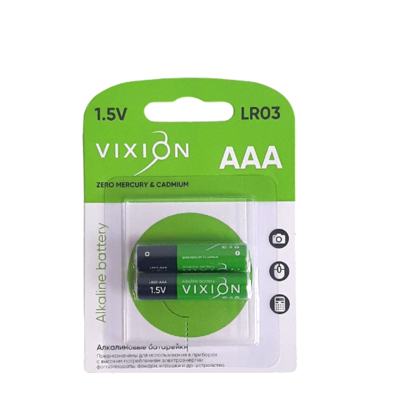 Функционируют даже при низких и высоких температурах, их режим работы от -20 до +54 С°. Батарейки Vixion LR03 оснащены плотным ядром из высокоочищенного цинка, что позволяет поместить в них больше энергии и использовать дольше других. Для снижения коррозии их покрывают никелированной сталью.