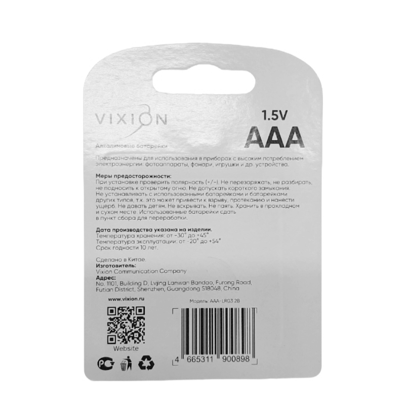 Батарейка алкалиновая LR03-AAA 2 шт VIXION