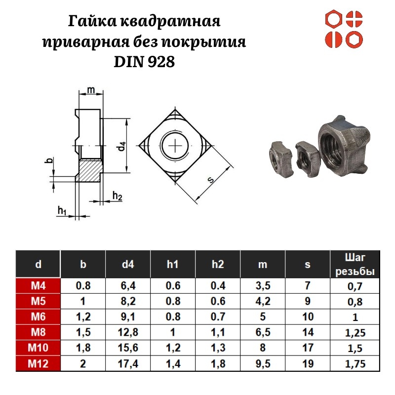 | Гайка квадратная приварная DIN 928 М12, 330 шт. | гкпр11м12 | 1 шт. |
