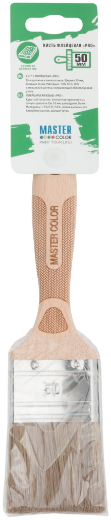 Кисть флейцевая, 70% ПЭТ/30% натур.щетина, бук.ручка, нерж.обжим, толщ.16мм, шир.50мм