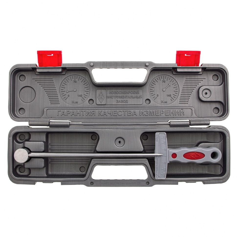 Ключ динамометрический НИЗ 14150, 12,5 мм, с присоединительным квадратом 1/2 дюйма, предназначен для затягивания крепежей с точно определенным усилием. Оснащен шкалой, позволяющей контролировать момент силы в диапазоне 32-120 Нм. Инструмент используется при сборке и обслуживании оборудования, а также применяется для ремонта автомобилей.