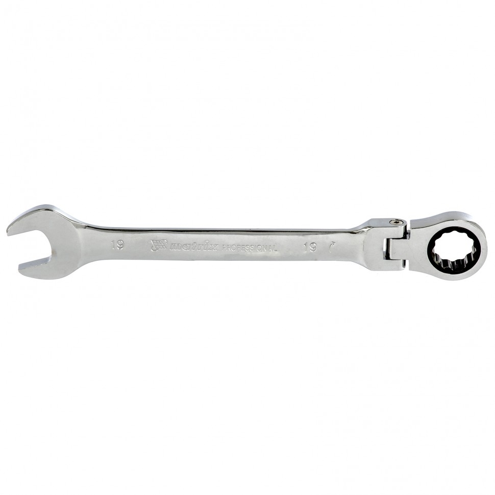 Ключ комбинированный трещоточный шарнирный зеркальный хром 19 мм CrV Matrix