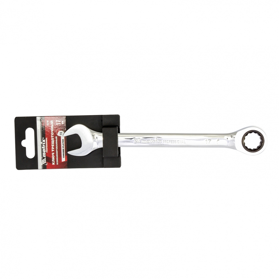 Ключ комбинированный трещоточный зеркальный хром 17 мм CrV Matrix