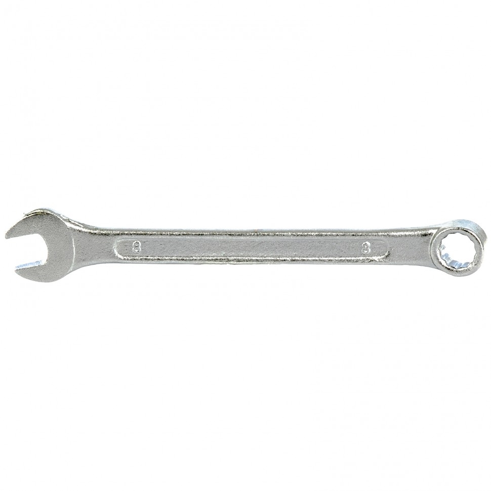 Комбинированный ключ Sparta 150355, 8 мм, хромированный — слесарно-монтажный инструмент для работы с резьбовыми соединениями. 12-гранная накидная головка обеспечивает надежный контакт с поверхностью крепежа, а рожковый зев дает возможность работать там, где применение кольцевого затруднено. Ключ пригодится в мастерской, гараже, будет полезен во время строительства и ремонта. Ключ изготовлен из углеродистой стали марки 45, чем обеспечивается его прочность и хороший ресурс.