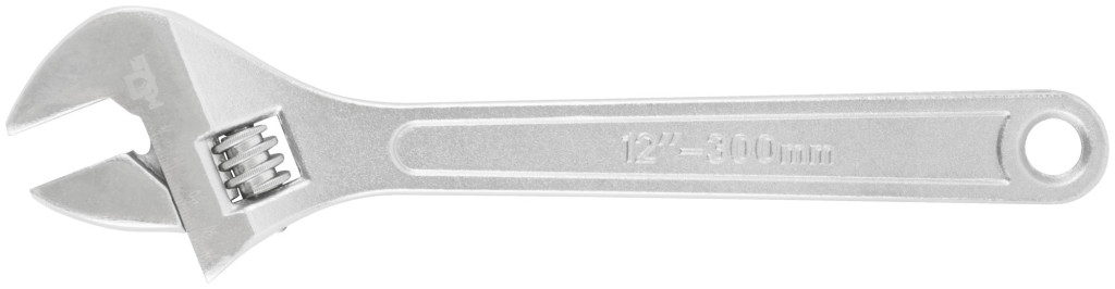 Ключ разводной 300 мм ( 35 мм ) Полированные губки с размерной шкалой. Материал: штампованная термообработанная инструментальная сталь с хромированным покрытием. Упаковка: пластиковый подвес.
