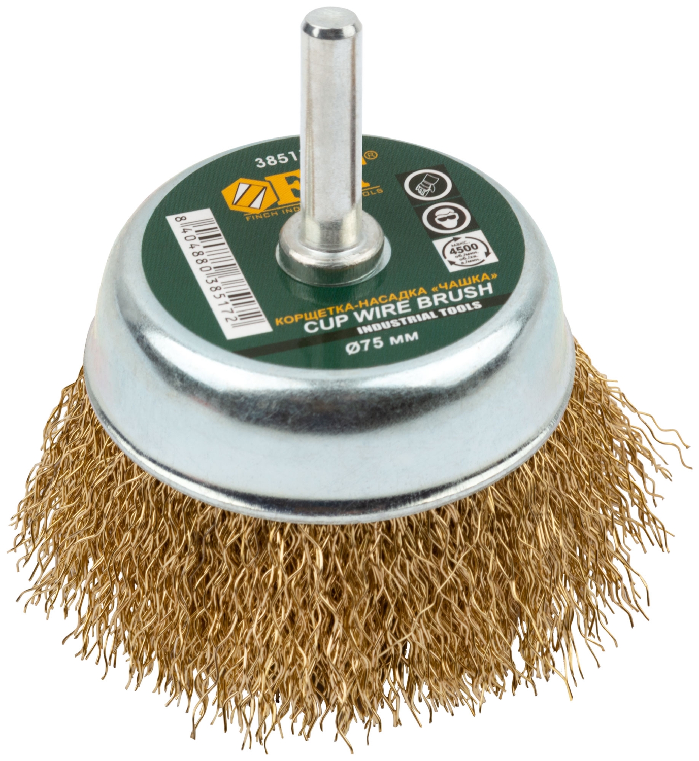 | Корщетка-чашка, со штифтом, стальн.латунир.волнист.проволока 75 мм | 38517 | 1 шт. |