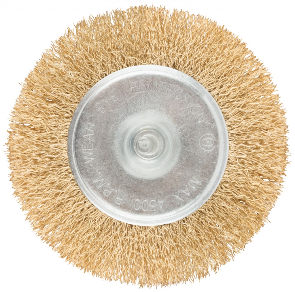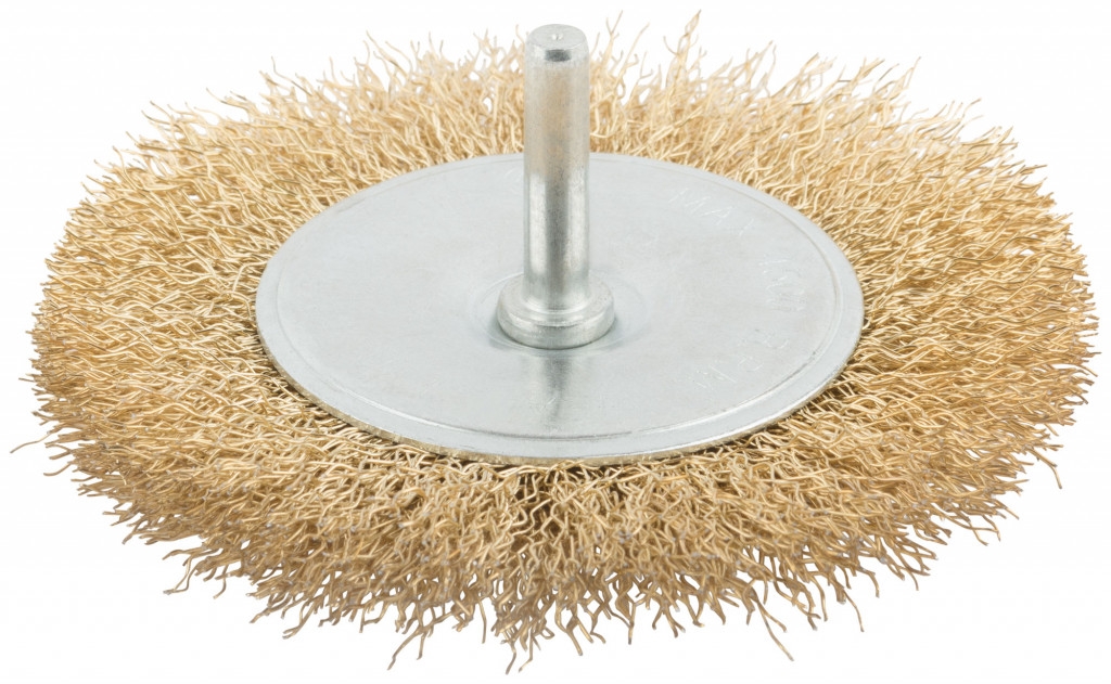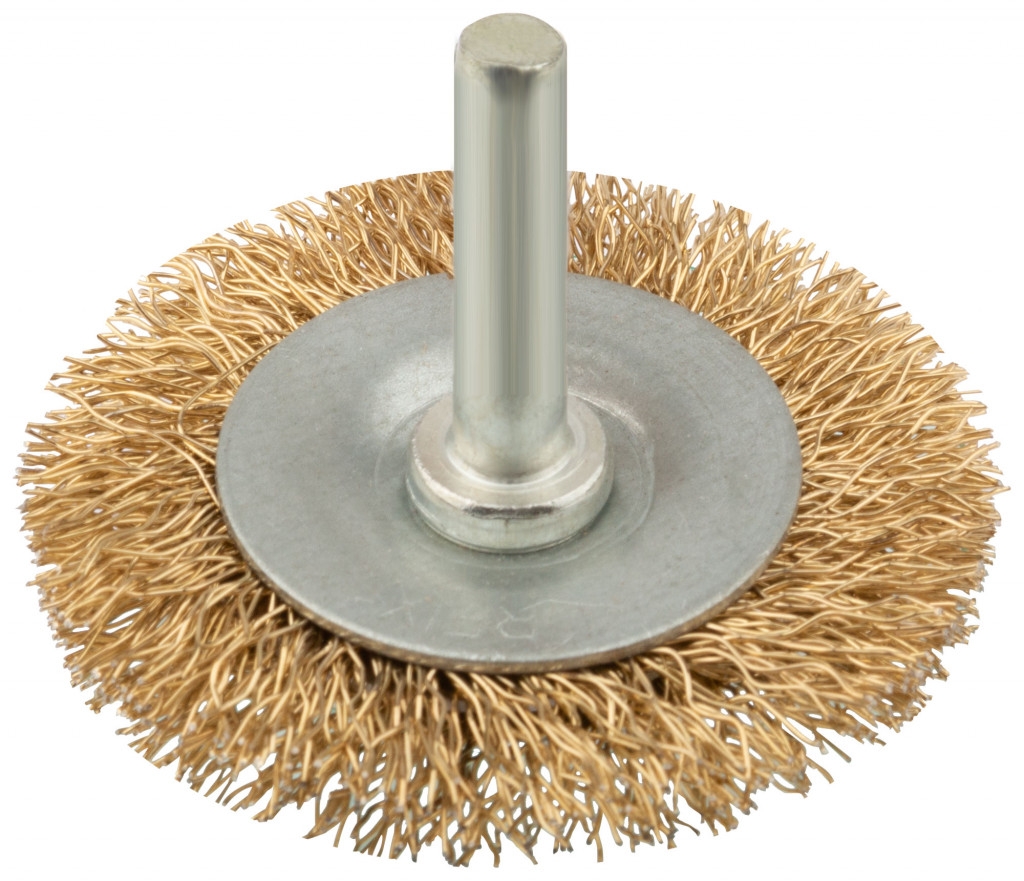 Корщетка-колесо, со штифтом, стальн.латунир.волнист.проволока MOS