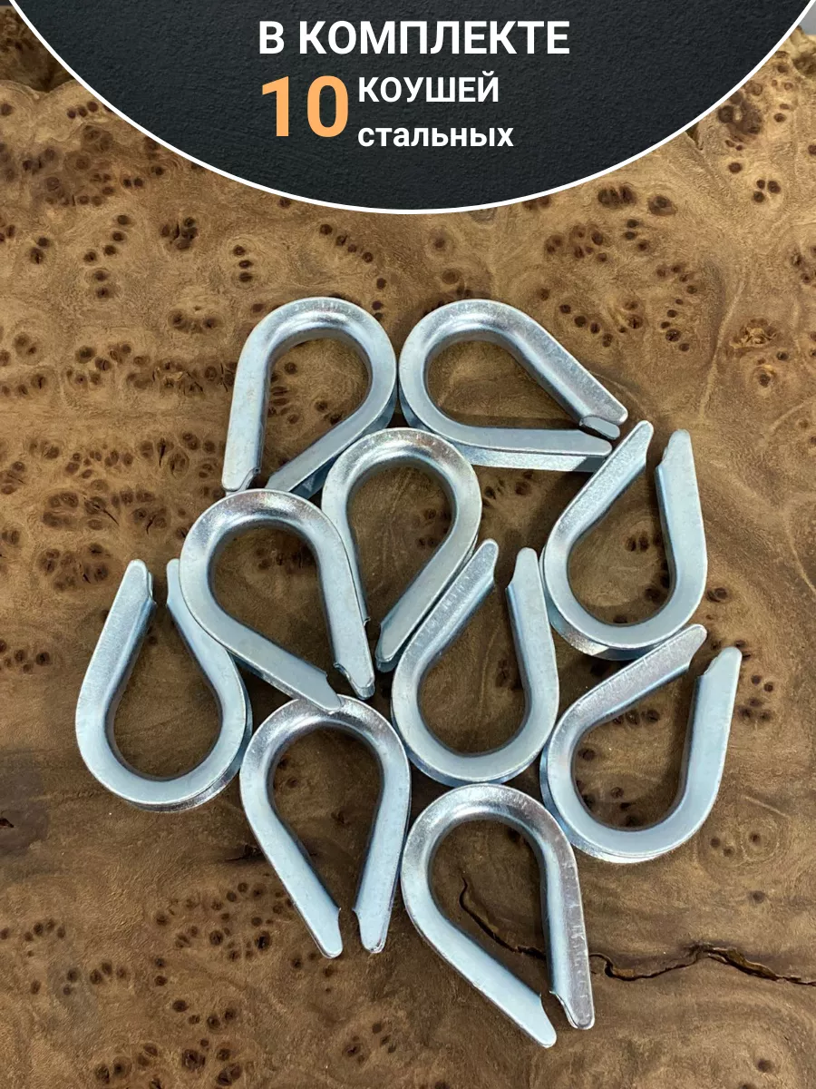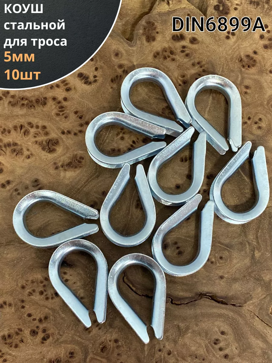 Коуш стальной для троса ОЦ DIN6899A, 10 шт.
