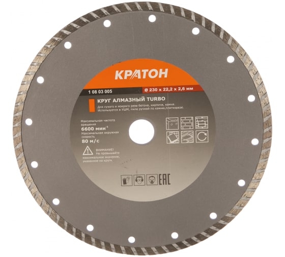 | Круг алмазный 230х2,6х22,2 мм TURBO Кратон | 1 08 02 005 | 1 шт. |