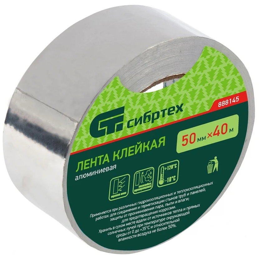 Лента клейкая алюминиевая 50мм х 40м Сибртех