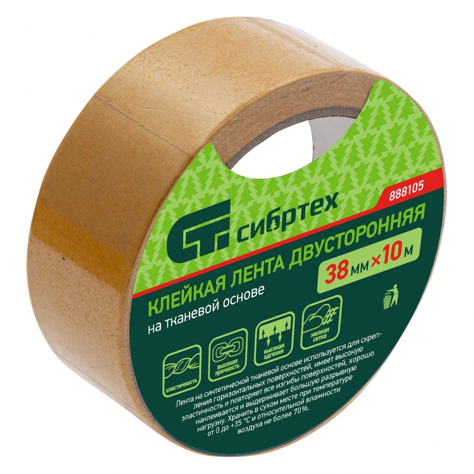 Лента клейкая двусторонняя 38мм х 10м, тканев.основа Сибртех