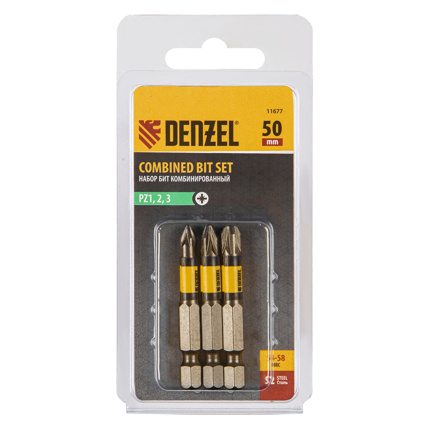 Набор бит шестигранный профиль РZ1,РZ2,РZ3 50 мм сталь S2 3 шт. Denzel