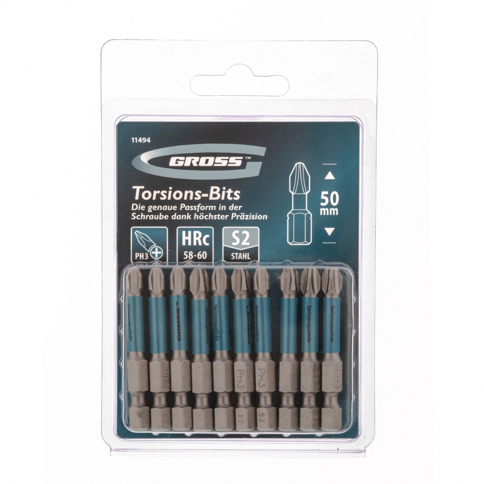 Биты торсионные PH3х50 мм, для ударн.шуроповертов Gross
