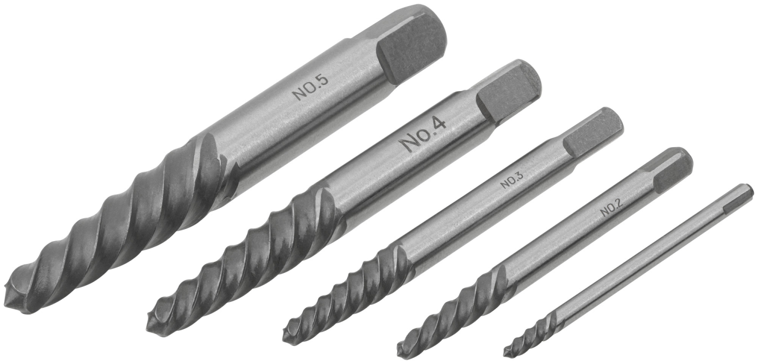 Усиленные экстракторы для шурупов FIT IT предназначены для выкручивания шурупов и болтов с поврежденным шлицем. Экстракторы изготовлены из легированная стали HRC 58-62, что обеспечивает их долговечность и надежность в использовании. 5 размеров экстракторов в комплекте обеспечивают широкий спектр применения.