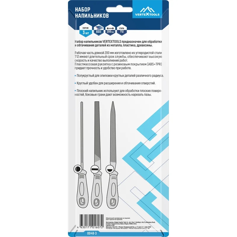 Набор надфилей 3 шт. VERTEXTOOLS