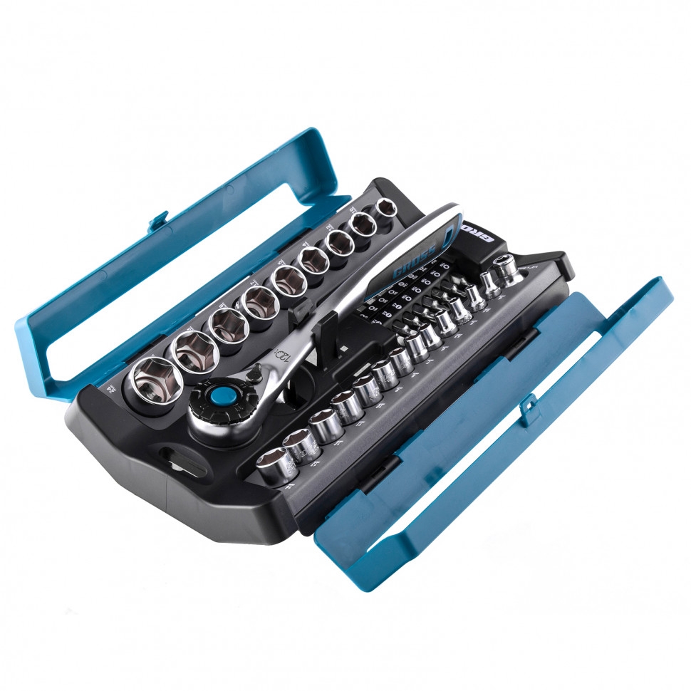 Набор торцевых головок, трещотка 120 зубьев, 41 предм. 1/2, 1/4 CrV Gross