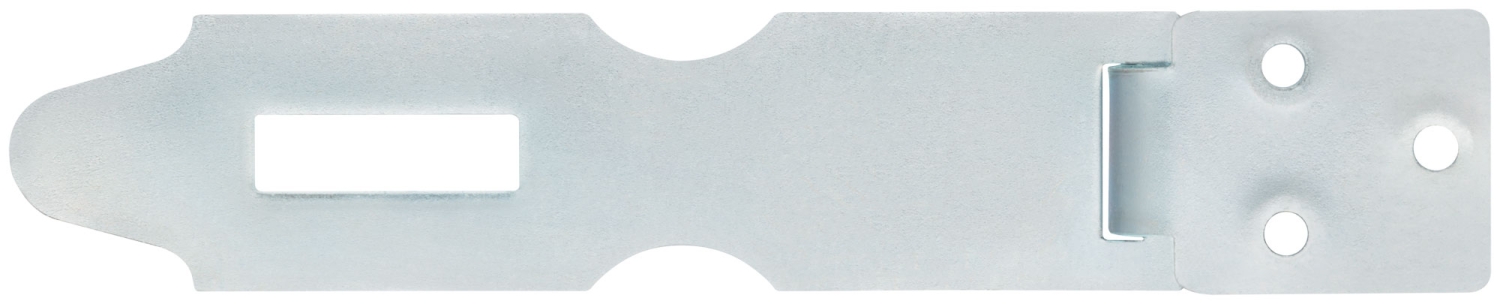 Простая стальная пластина с петлевым механизмом для цепляния замка, покрытая цинком для стойкости к ржавчине и внешним воздействиям. Компактный размер облегчает установку на разные типы дверей.