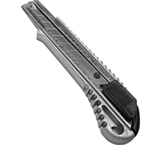 Выдвижное многосекционное лезвие изготовлено из высококачественной нержавеющей стали. Имеет систему замены лезвия.