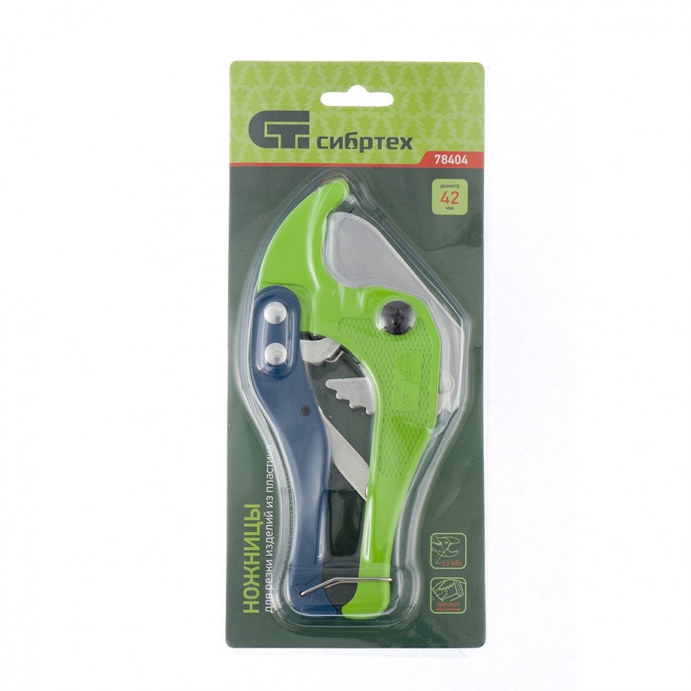 Ножницы Сибртех 78404 с порошковым покрытием рассчитаны на резку изделий из пластика диаметром до 42 мм. Они используются в быту для работы с трубопроводными системами. Благодаря храповому механизму ножницы легко разрезают материалы при минимальных усилиях от мастера. Преимущества Надежность и высокий ресурс — остро заточенное лезвие изготовлено из стали 65 Mn. Долговечность — корпус выполнен из легкого алюминиевого сплава, не подверженного коррозии. Безопасная транспортировка и хранение — блокировочная скоба не допускает случайного раскрытия рукояток. Легкие и прочные ножницы — корпус выполнен из алюминия.