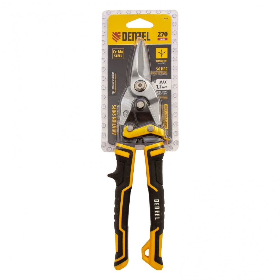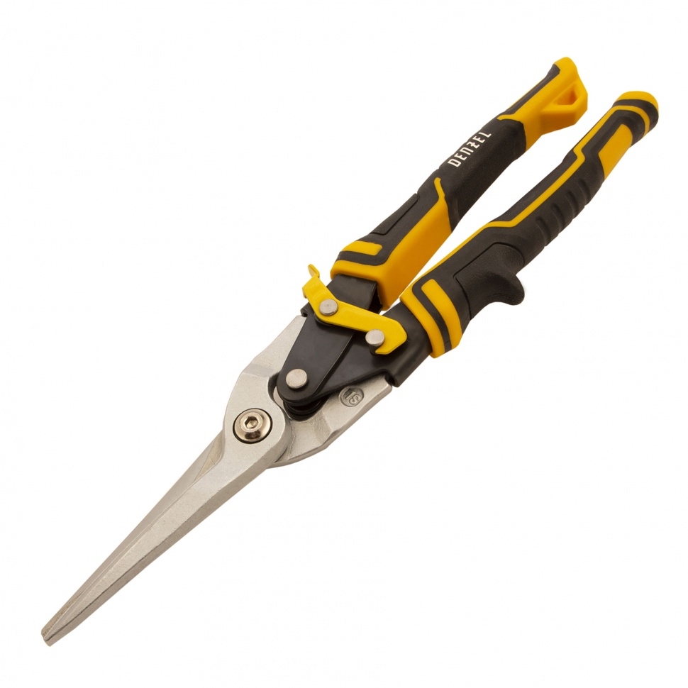 Ножницы по металлу, 270 мм, прямой проходной рез., сталь-CrMo, трехкомп.рук Denzel