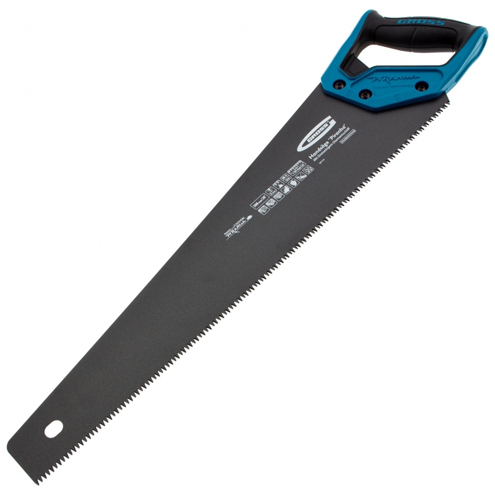 Ножовка по дереву Gross PIRANHA 24124 с полотном длиной 300 мм, калеными зубьями с 3D-заточкой и шагом 7 TPI, с тефлоновым покрытием полотна и 2-компонентной рукояткой, используется для продольного и поперечного распиливания древесины различных пород, МДФ, ДСП, ДВП, ламината, а также пенополистирола, полиуретана и других синтетических материалов. Рабочая часть состоит из крупных зубьев поэтому ножовка подходит для решения широкого спектра задач. Трехгранная заточка зубьев увеличивает производительность инструмента без потери качества распиловки. Ножовка предназначена для столярных работ. Полотно изготовлено из японской пружинной стали SK-5, поэтому характеризуется высокой прочностью и устойчивостью к нагрузкам.