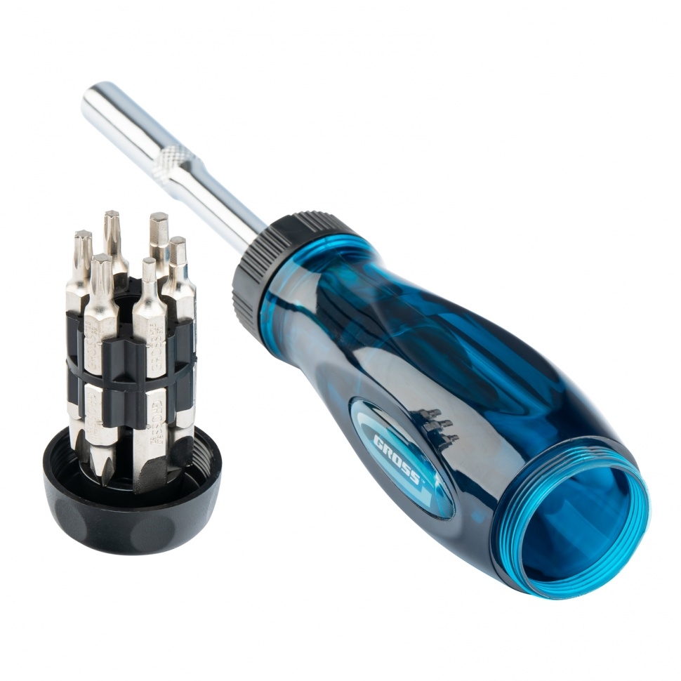 Отвертка реверсивная с удлинителем, трещотка 72 зуба, 12шт., сталь S2, Gross