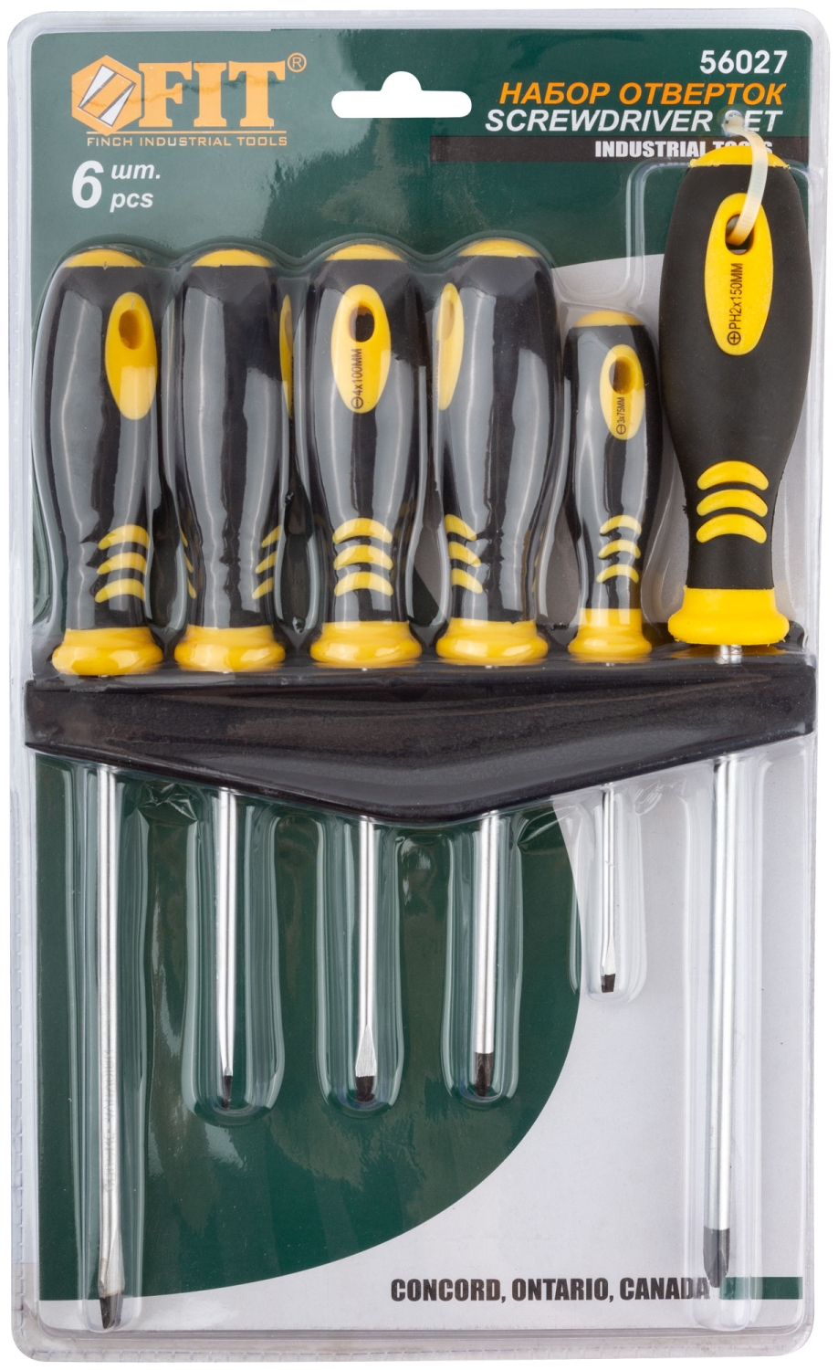 «Хард». Набор 6 шт. на пластиковом держателе. Отвёртки: PH 1x100, PH 2x150, SL 3x75, SL 4x100, SL 5x100, SL 5x150. Материал: жало из хром-ванадиевой стали, магнитный наконечник, прорезиненная ручка. Упаковка: блистер.