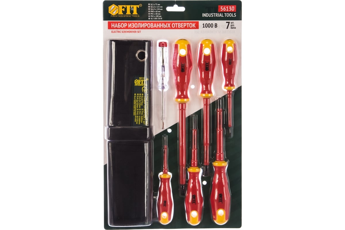 Отвертки изолир. 1000В, CrV сталь, прорезиненная ручка, набор 6 шт + 1 индикаторная