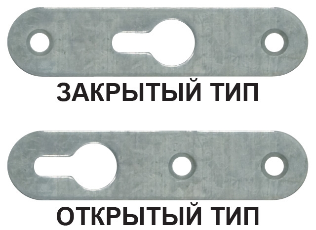 Подвес открытый представляют собой металлическую пластину толщиной 1,5-2 мм с отверстиями для крепежных саморезов и дюбеля или костыля в стене. У подвеса закрытого отверстие расположено по центру пластины, отверстия под саморезы располагаются сверху и снизу. Как правило саморезов всего два. Крепятся к вертикальным стойкам. Основное достоинство такого подвеса — невидимость.