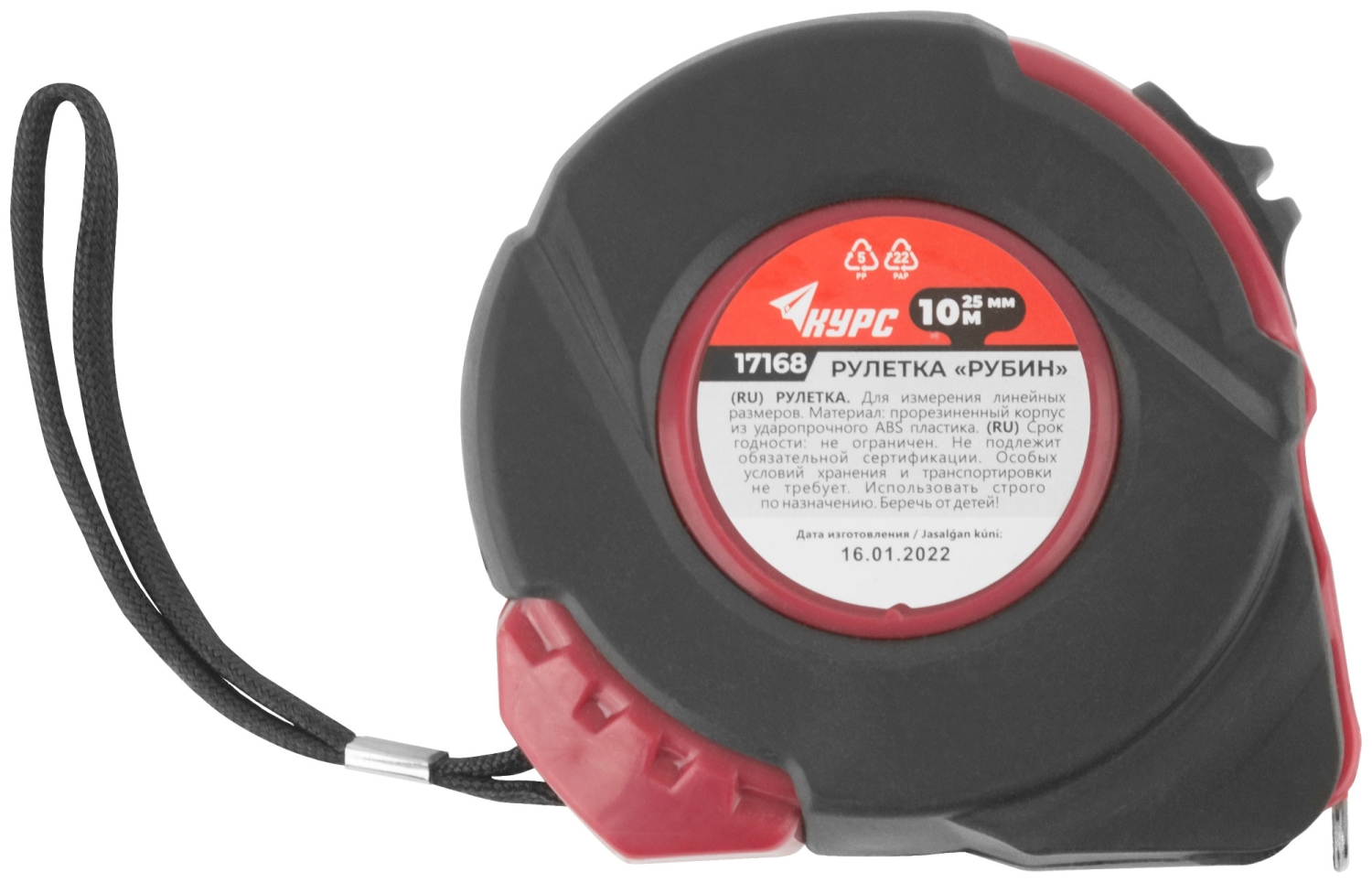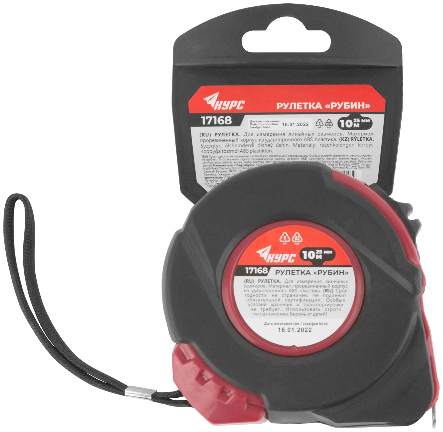 Рулетка Рубин, прорезин.корп., 10м х 25мм