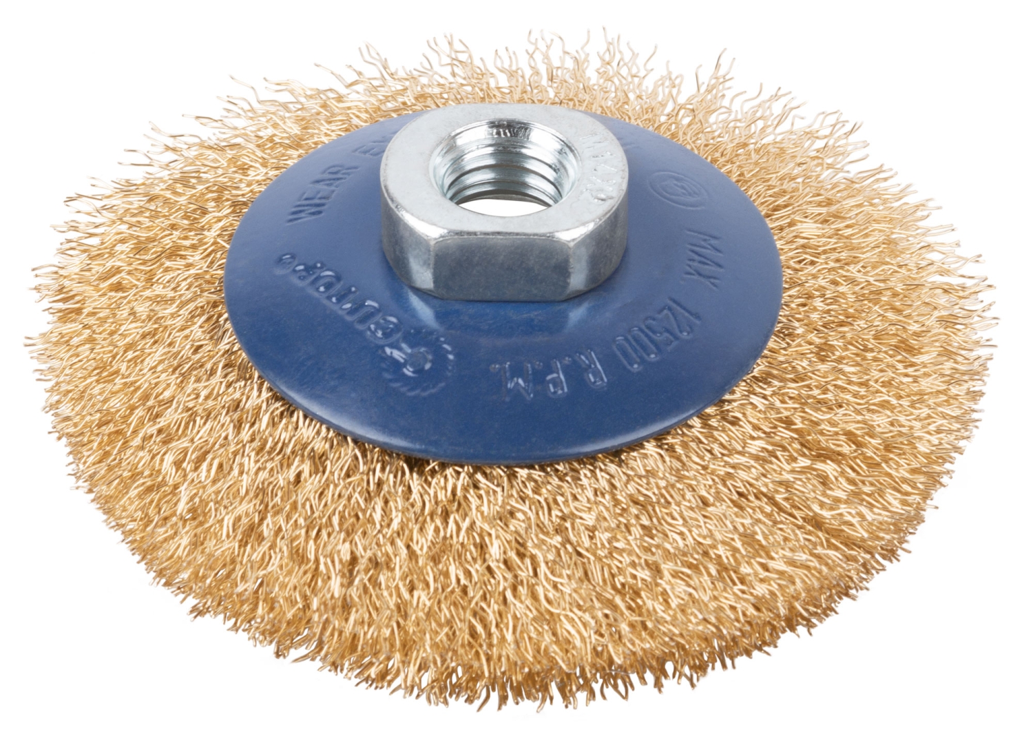Щетка для УШМ "тарелка", латунир.витая проволока 0,3мм, М14 CUTOP Profi