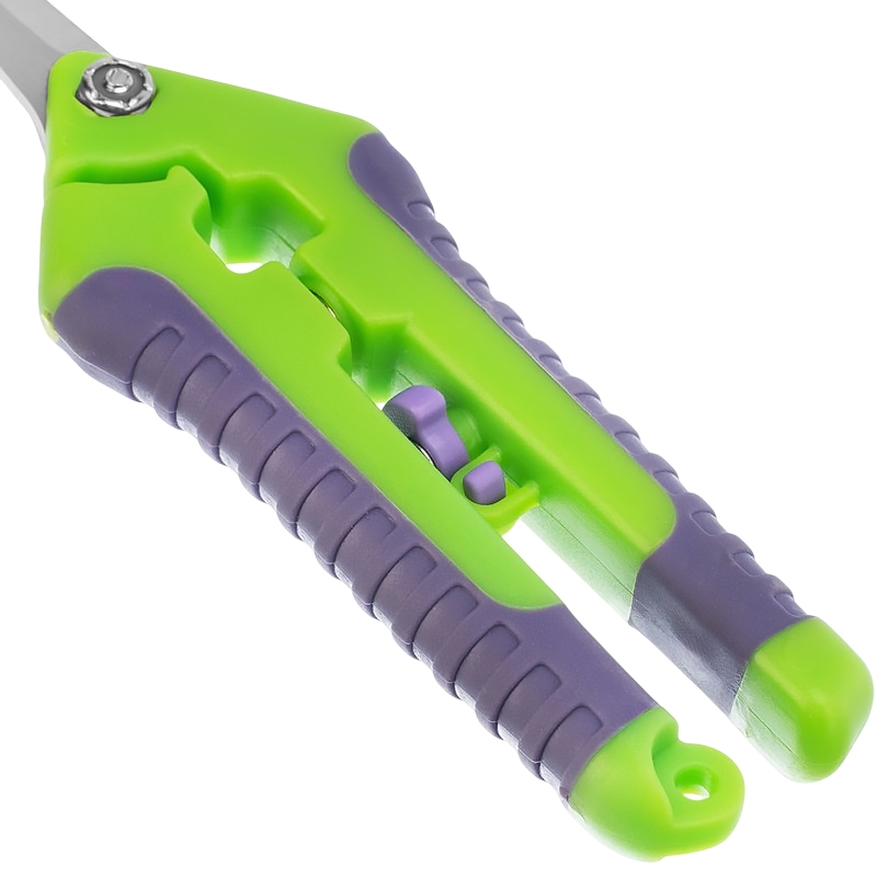 Секатор Palisad 60499 специально разработан для работы с растениями, такими как бонсаи и топиарии. Длина инструмента составляет 160 мм, а удобная рукоять выполнена из прочного пластика с резиновыми накладками, обеспечивающими комфортное использование. Лезвия движутся параллельно друг другу, гарантируя четкий и гладкий срез ветвей диаметром до 10 мм. Регулировка плотности смыкания производится посредством специального винта, позволяющего точно настроить усилие резания. Материал изготовления лезвий - нержавеющая сталь с защитным покрытием, предотвращающим коррозию и повышающим срок службы изделия. Рукоятка покрыта мягким материалом, защищенным от ультрафиолетового излучения, что делает работу комфортной даже при длительном воздействии солнца. Кроме садовых работ, секатор отлично справляется с нарезкой различных материалов бытового назначения: плотного картона, упаковочной бумаги, тканей и лент. Надежность конструкции обеспечивает специальный амортизатор, расположенный между ручками, снижающий риск повреждения и