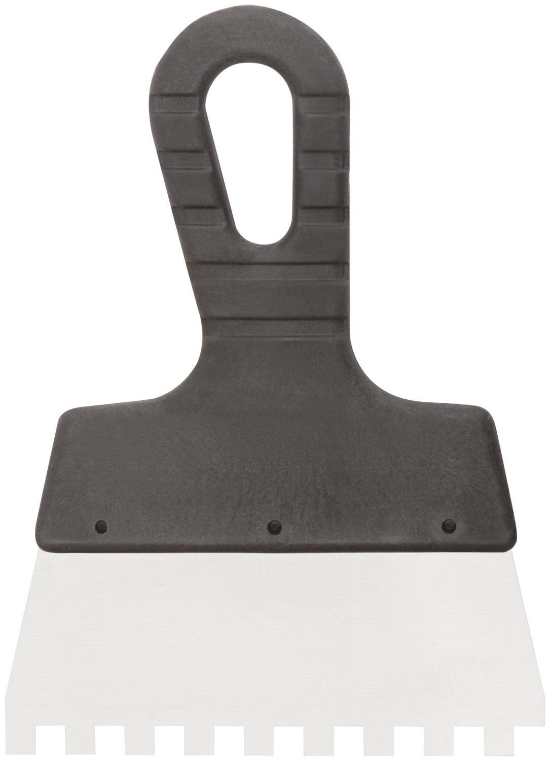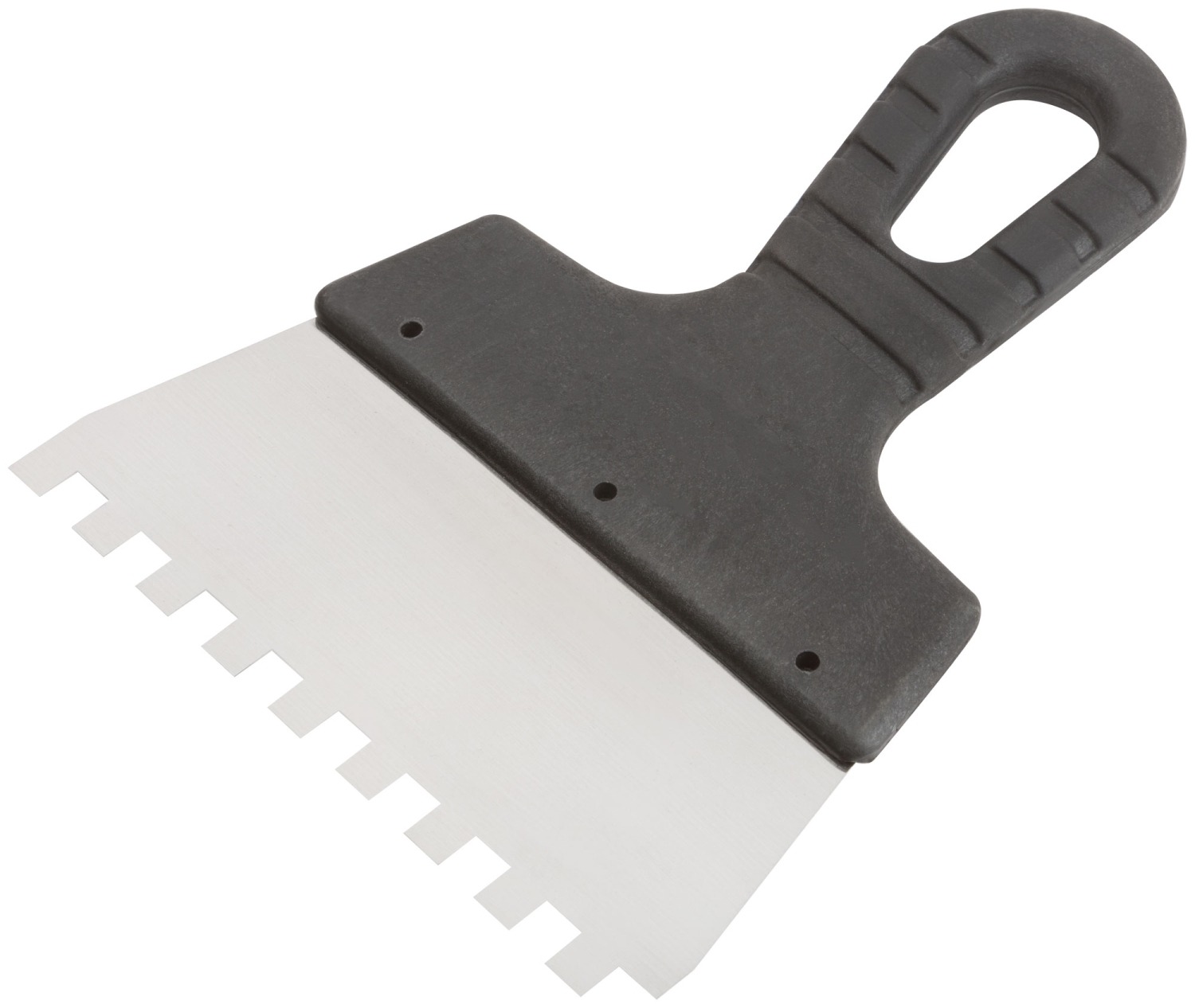 Зубчатый. Для работы на поверхностях большой площади. Материал: нержавеющая сталь, пластиковая ручка.