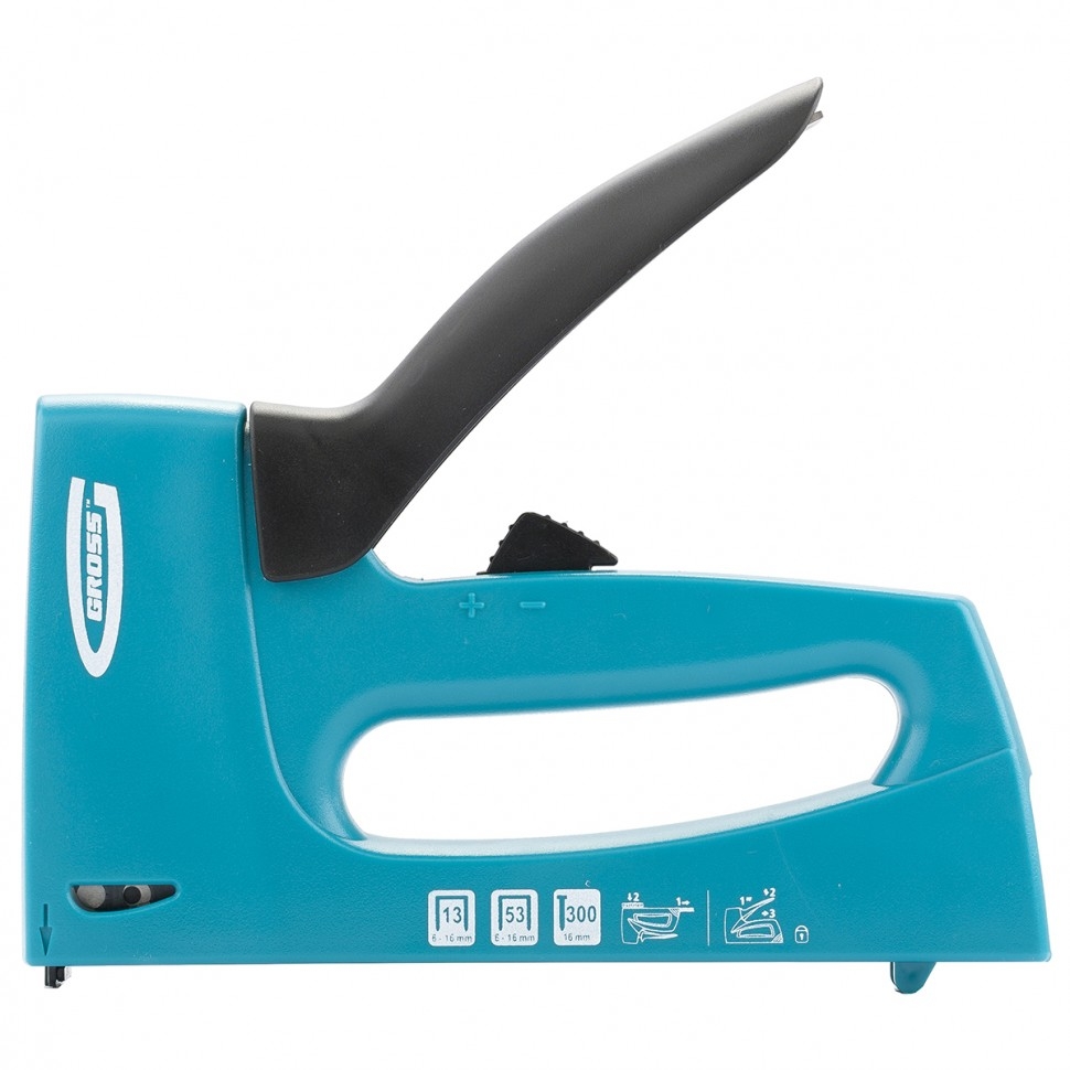 Степлер мебельный универс.,пластик.корп.,тип скобы 36,53,300,500. 8-14 мм 4-функц Gross