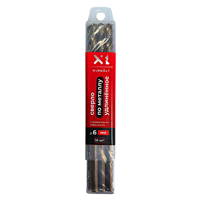 Сверло по металлу с кобальтом 5% P6M5K5 удлиненное 6,0 мм HIMBOLT 10 шт.пластиковый бокс