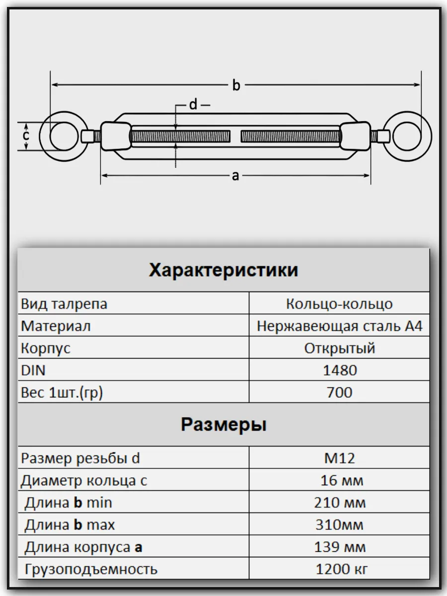 | Талреп кольцо-кольцо нержавеющий А4 М12 DIN1480, 2 шт. | A4BJ51200091A07ф2 | 1 шт. |