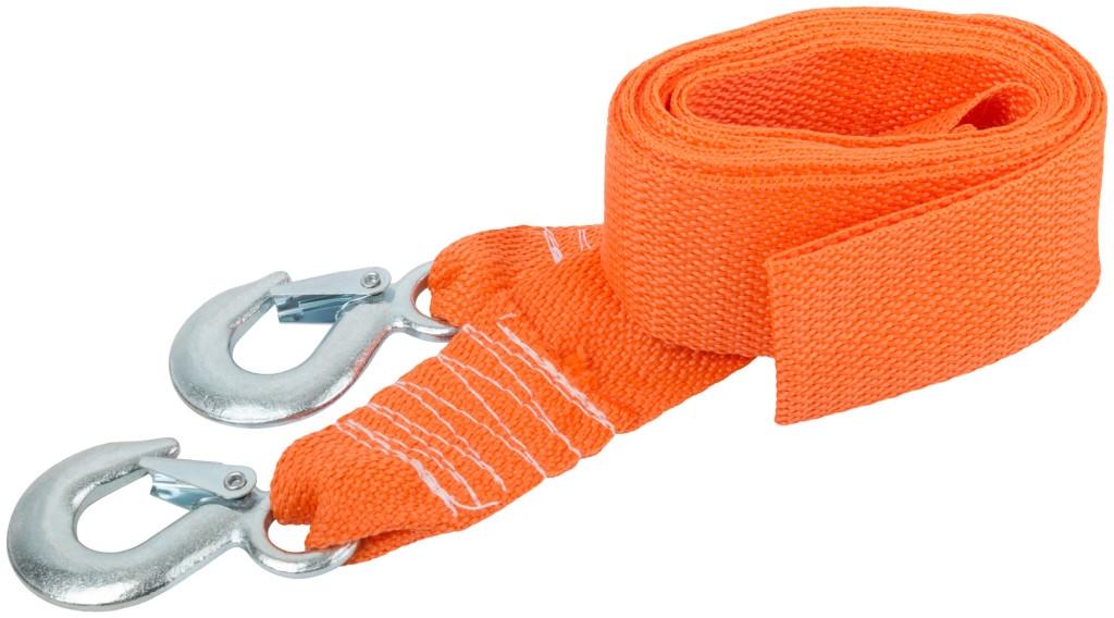 Предназначен для буксировки при поломках, выезде из грязи/снега. Эластичная лента подавляет рывки. Крюки надежно цепляются за проушины, сумка обеспечивает компактное хранение в багажнике.