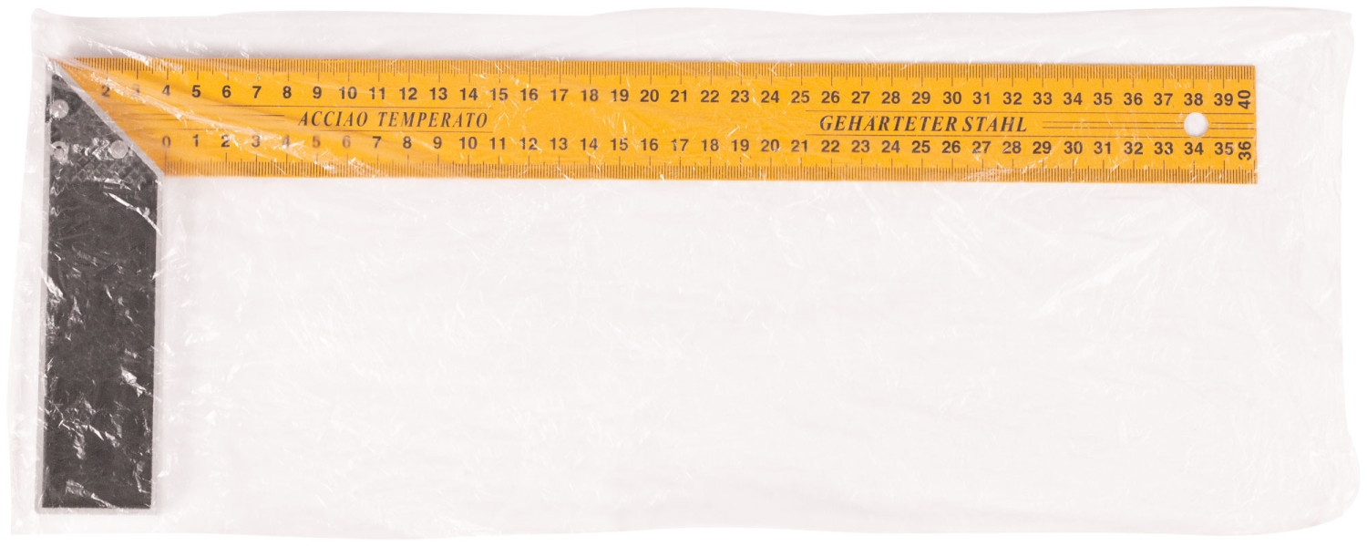 Угольник столярный, двусторонняя шкала 400 мм. Двусторонняя шкала. Материал: линейка из инструментальной стали, основание из алюминиевого сплава.