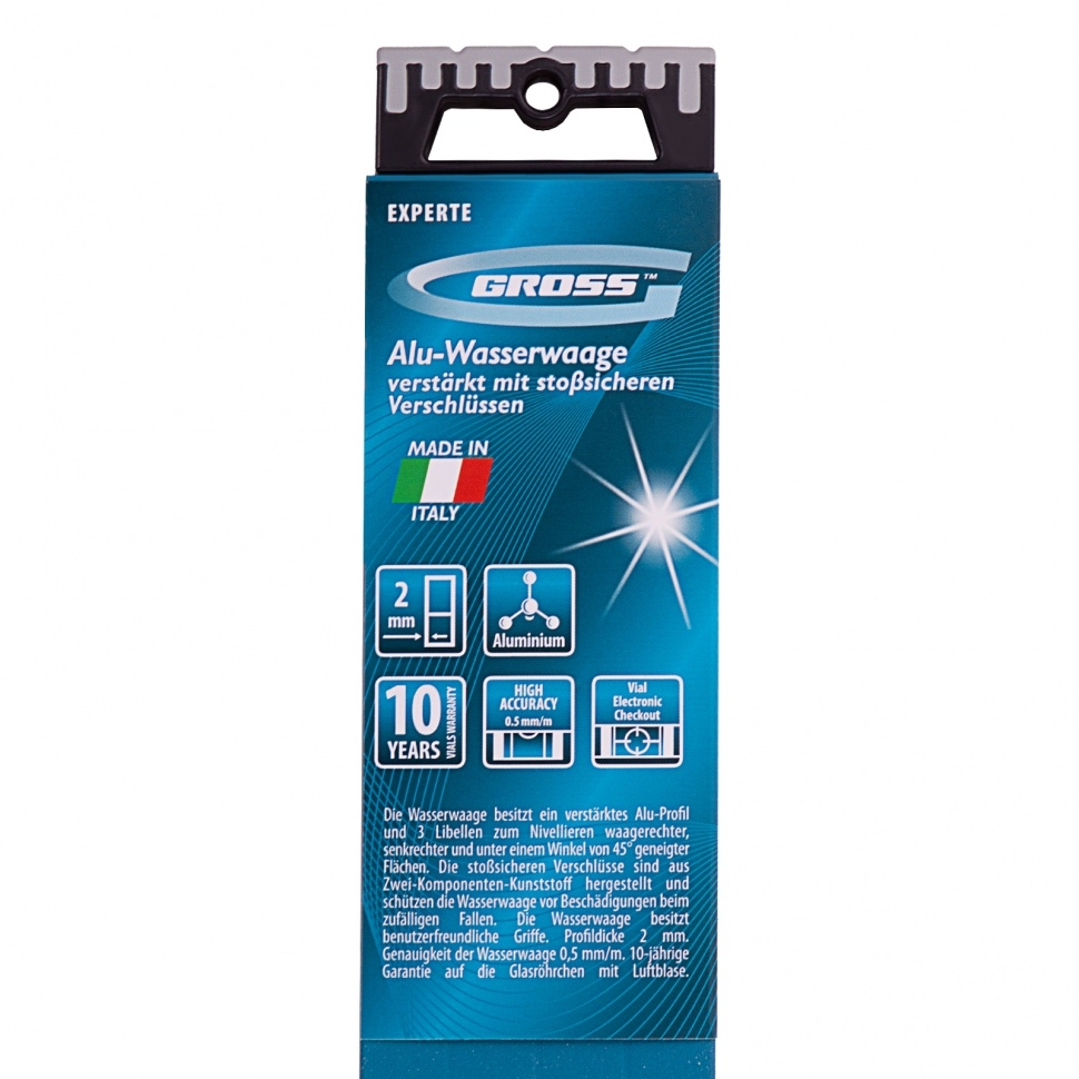 Уровень алюминиевый усиленный с ударопрочными заглушками 3 глазка рукоятки 1500 мм Gross