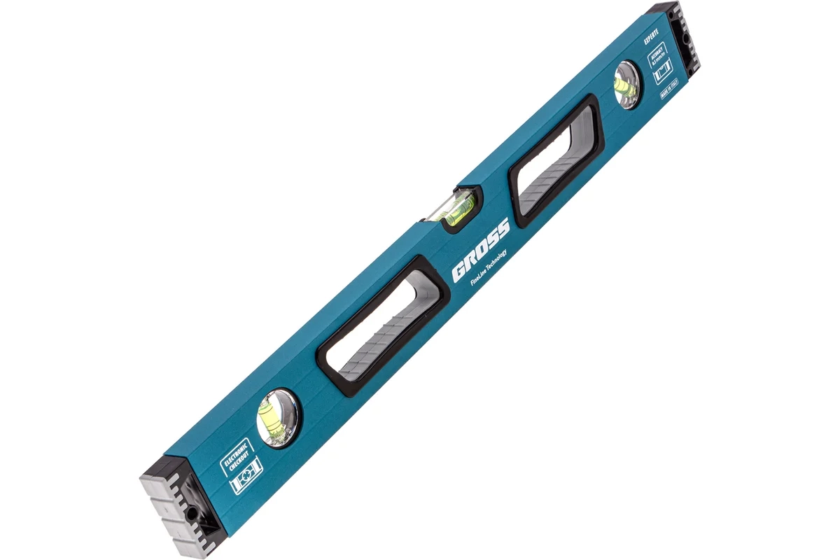 Уровень алюминиевый усиленный с ударопрочными заглушками 3 глазка рукоятки 600 мм Gross