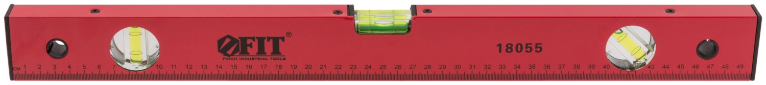 Уровень "Стандарт", 3 глазка, красный корпус, фрезерованная рабочая грань, шкала 500 мм. Материал: алюминий
