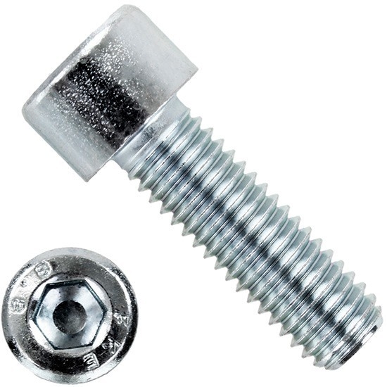 Метрический крепеж повышенного класса прочности 8.8 для высоких нагрузок. Используется при сборке машин, механизмов, оборудования, мебели, строительных конструкций и различных видов транспорта. Цилиндрическая головка без накатки с внутренним шестигранником. Установочный инструмент: ключ-шестигранник (Inbus) – один из лучших типов привода для тугой затяжки. Может использоваться без гайки в резьбовых отверстиях или совместно с гайкой и шайбой. Часто применяется в местах, где недостаточно пространства для затягивания болтов с шестигранной головкой.