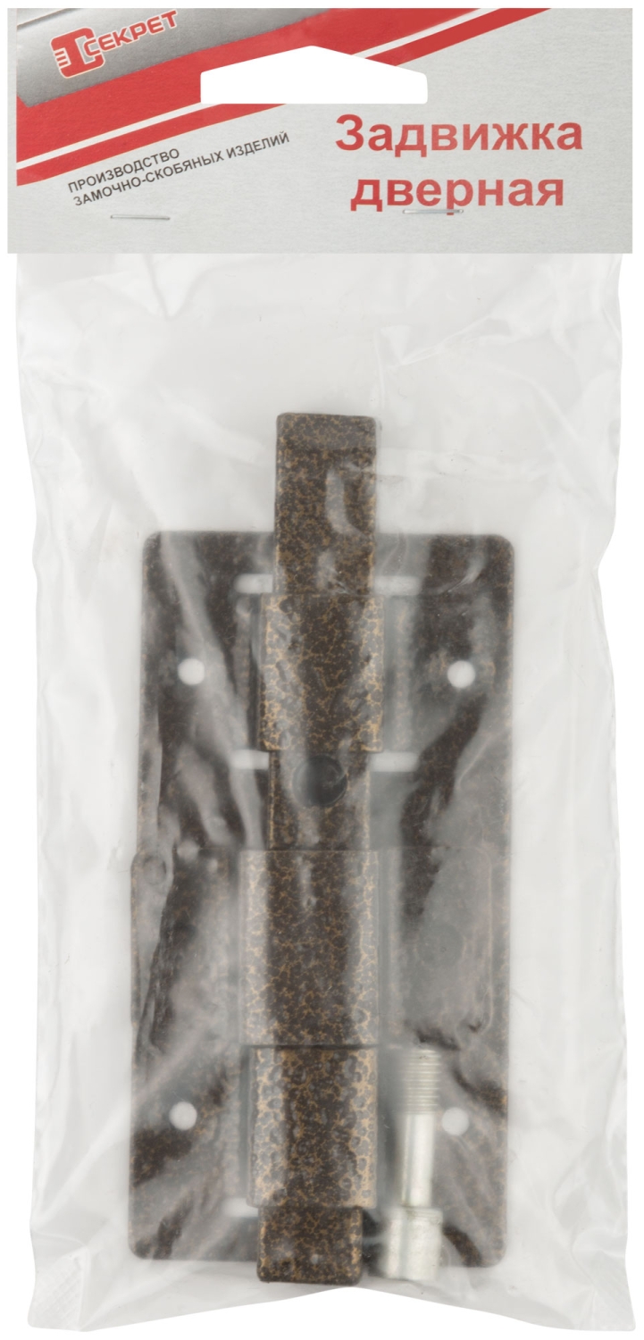 Задвижка накладная усиленная для дверей квадратный ригель бронза